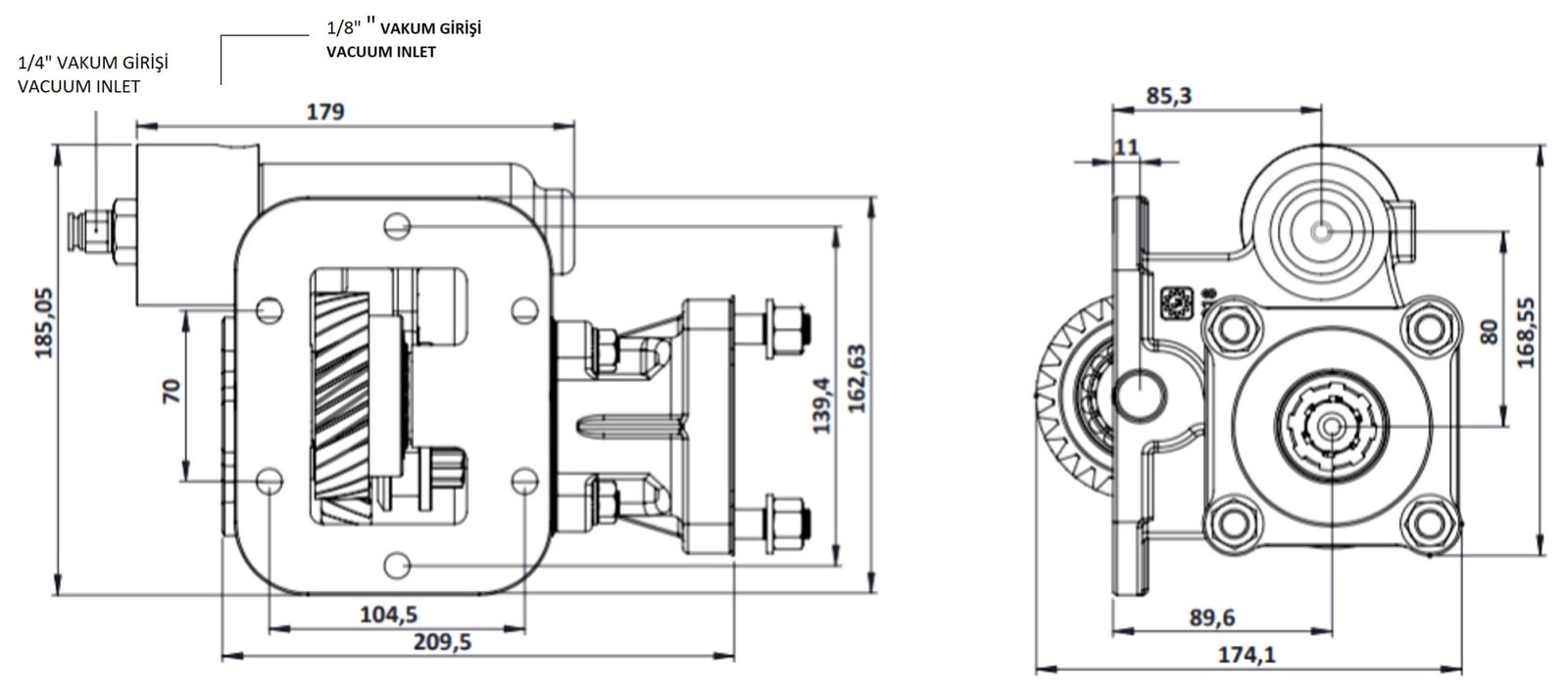 PTO FEATURE – PTO TYPE DOUBLE GEAR – VACUUM / DOUBLE THREAD – VACUUM