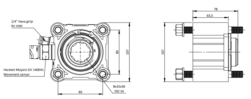 PTO FEATURE – PTO TYPE SINGLE GEAR – AIR / SINGLE THREAD – PNEUMATIC
