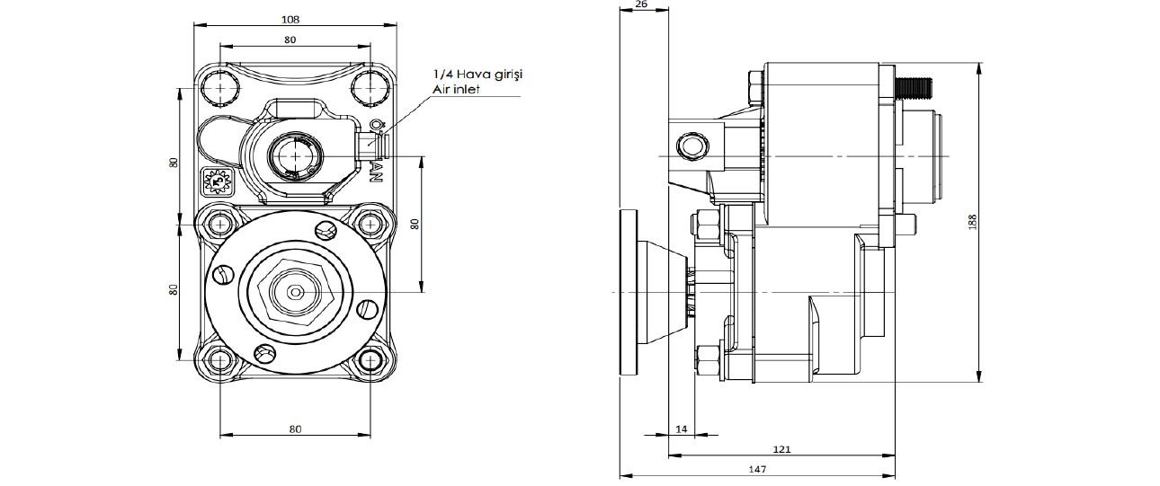 PTO FEATURE – PTO TYPE DOUBLE GEAR – AIR / DOUBLE THREAD – PNEUMATIC