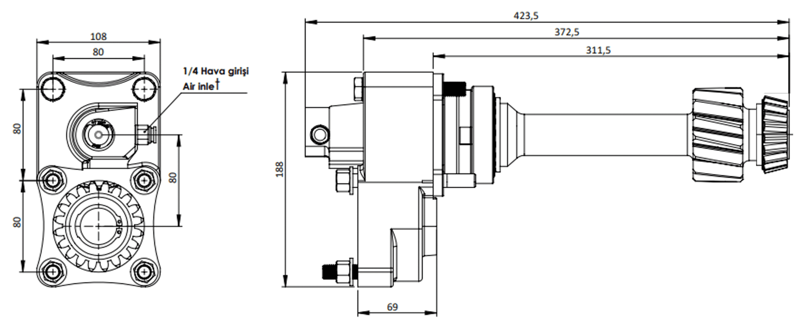 PTO FEATURE – PTO TYPE DOUBLE GEAR – AIR / DOUBLE THREAD – PNEUMATIC
